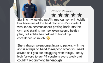 Fantastic experience: Adelle is an incredibly friendly, professional, caring and supportive Personal Trainer. After working with Adelle for near three months I can honestly say that this woman has helped me to become a better version of myself and a woman I am truly proud of. Not only am I becoming physically stronger but also mentally! I can finally look in a mirror and feel good about the body I see, I can enjoy a non-restrictive diet, look forward to gym sessions and I can reach out to an amazing and dedicated woman who will answer any questions and provide the best advice. I have the highest amount of respect for Adelle and her work, if you’re looking for a PT- get yourself in touch with Adelle, you will not regret it.