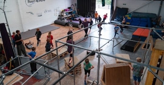 Fantastic experience: Run by Access Parkour and also home to Freedom of Flight Aerial as well as a place for circus, acro, and professional training. Room to Move is a large space with a big scaffold and plenty of parkour equipment I cant name. I take aerial hoop with Angela and static cloud with Caitlin and highly recommend both. First parkour class (i think) is free. Aerial tasters are on for £10 if you want to try your hand at circus. This is my happy place.