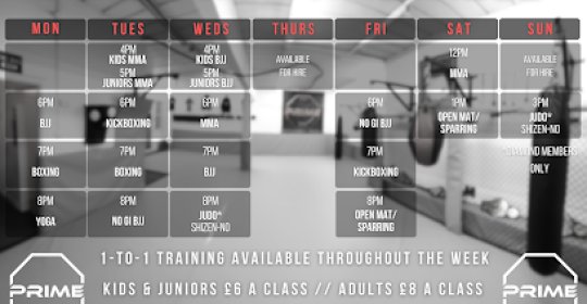 Fantastic experience: Great gym, have only trained here for a short amount of time but everyone makes you feel welcome the moment you walk through the door, regardless of your goal, sammy the owner and head coach is committed to the gym and to all the students that attend and this shows in the progress that his students make. If you are looking for fitness or to be a competitive fighter I recommend prime mma.